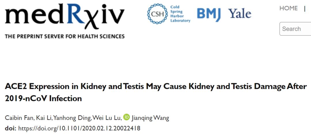 近日,南京医科大学附属苏州医院泌尿外科的樊彩斌等在预印本平台medRxiv上发表了一篇论文——ACE2 Expression in Kidney and Testis May Cause Kidney and Testis Damage After 2019-nCoV Infection,该研究指出肾脏和睾丸可能是新型冠状病毒的潜在攻击目标。