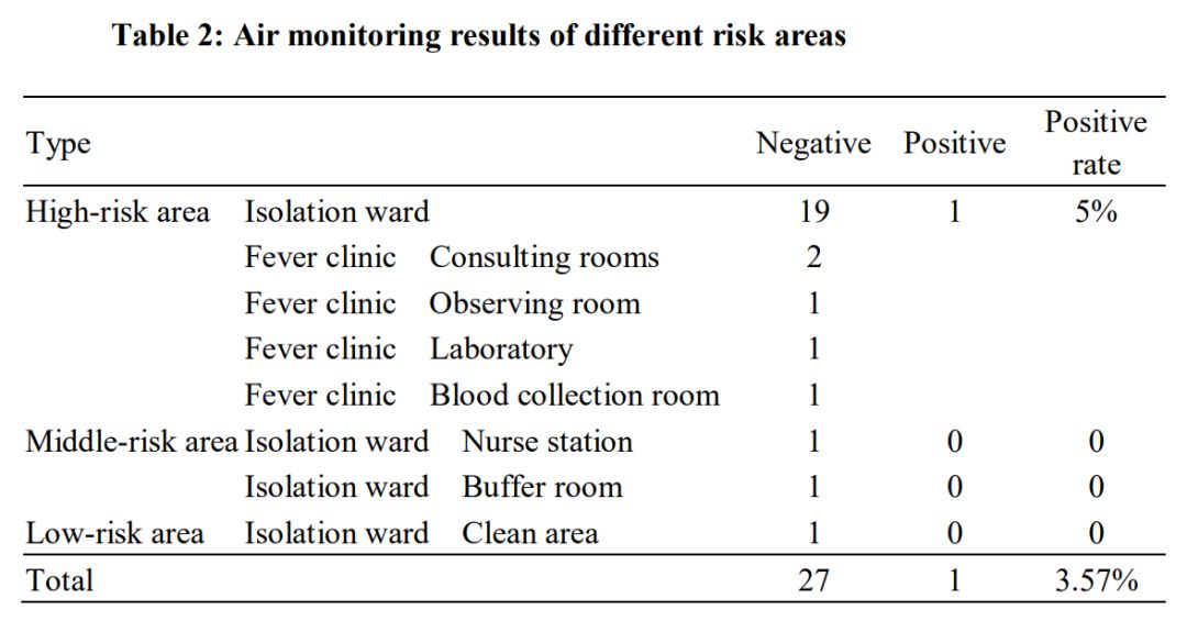 检测结果显示,重症监护室的空气中存在病毒,疑似患者隔离区的护士站的表面也检测到了病毒。