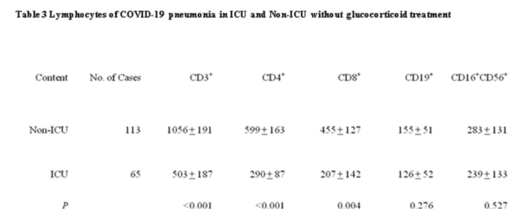 通过进一步分析178例未经糖皮质激素治疗患者的淋巴细胞亚群发现,CD4和CD8 T淋巴细胞在轻度(非ICU)患者和重度或危重(ICU)患者之间存在显著性差异(p < 0.01),提示新型冠状病毒肺炎可能直接影响免疫系统。