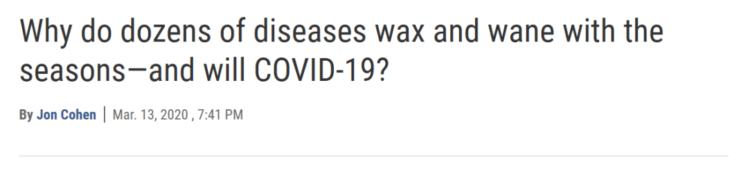 日前,国际顶尖学术期刊 Science 杂志报道了一篇题为:Why do dozens of diseases wax and wane with the seasons—and will COVID-19? 的文章。