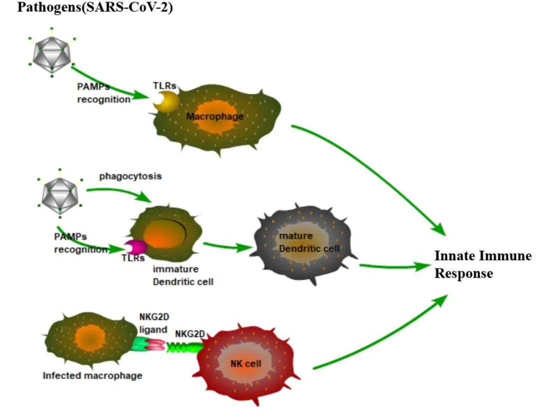 病毒侵入人体后,免疫系统先启动固有免疫应答,对病毒进行抵抗。