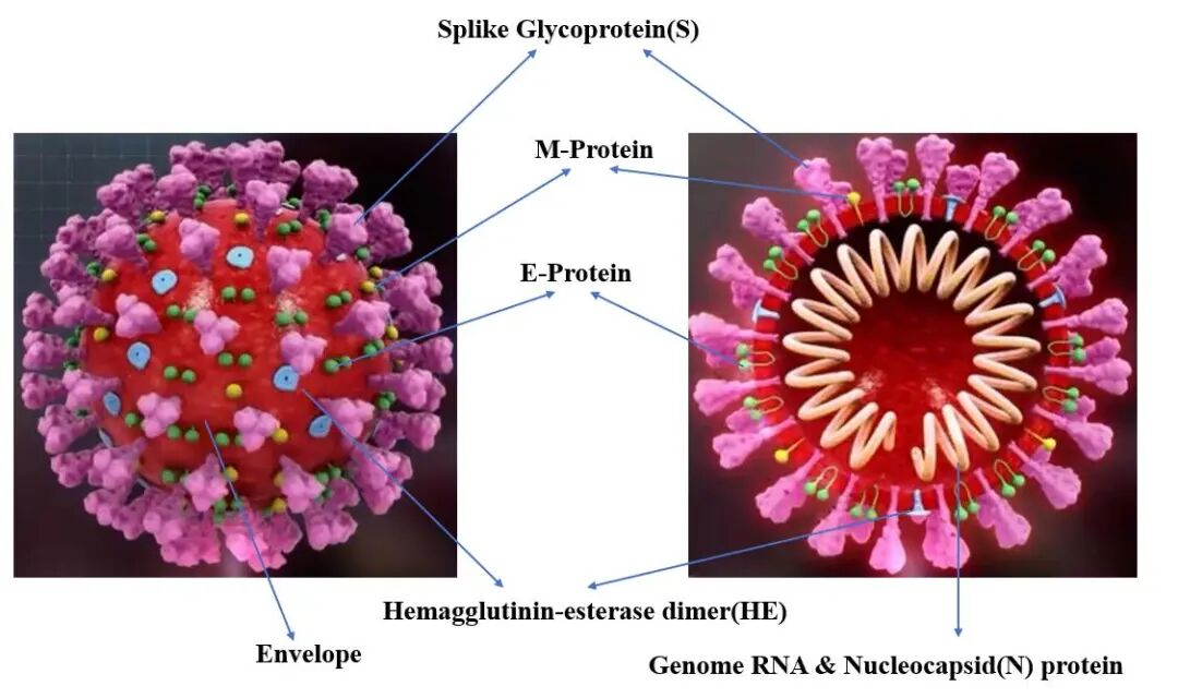 两种刺突蛋白:刺状糖蛋白修剪分子(S)和血凝素-酯酶(HE)