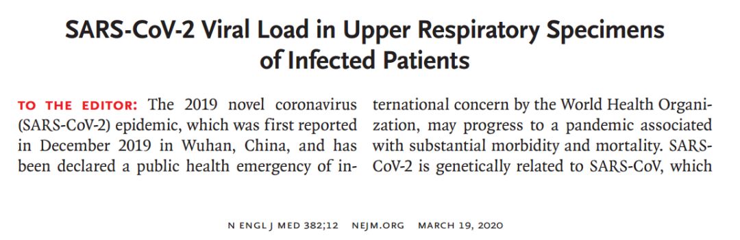 此外,广东省疾控中心于3月19日在新英格兰医学杂志NEJM发表的文章表明,新冠肺炎患者在发病后不久就检测到了高病毒载量,有一位感染者从未表现出症状,但是他所释放的病毒量与出现症状的患者相当。
