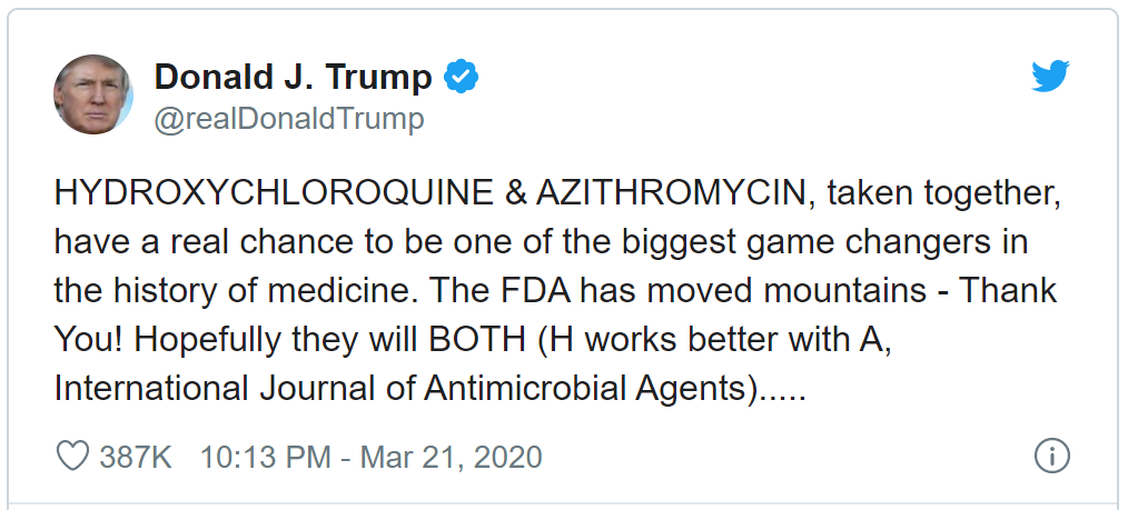 氯喹作为一种已有几十年历史的抗疟疾药物,近期却被发现对COVID-19具有不错疗效。美国总统特朗普称:氯喹和羟氯喹是“游戏规则的改变者”,他的言论导致人们对氯喹的需求激增。