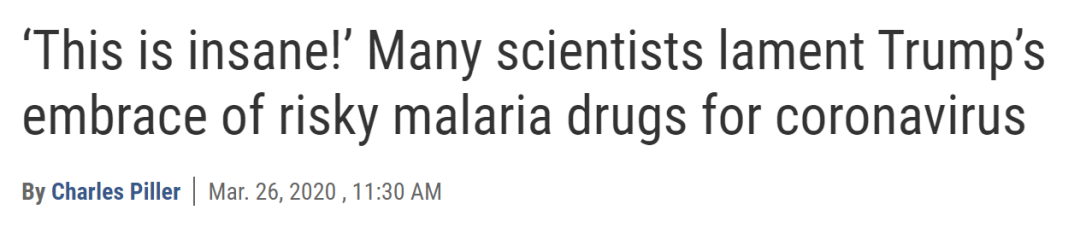 特朗普总统对这些高风险药物治疗新冠肺炎的鼓吹,许多科学家并不认同,称特朗普这是“疯了吧(This is insane)”