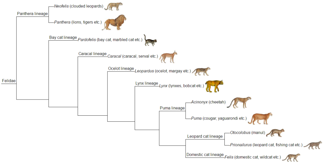 众所周知,老虎和狮子都属于猫科动物,下图为猫科动物分类。