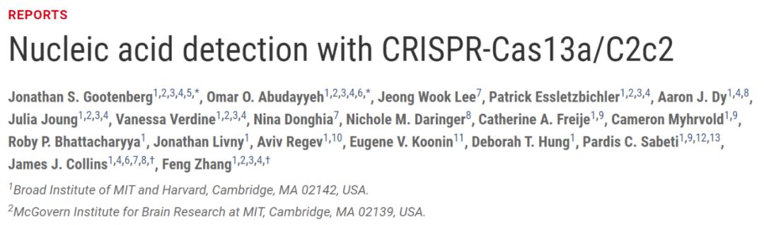 2017年4月,CRISPR基因编辑大牛张锋,在 Science 杂志发表论文,发明了基于CRISPR/Cas13的病毒检测技术。