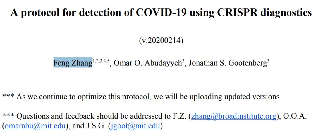 2月14日,CRISPR基因编辑大神张锋教授团队发布了使用基于CRISPR/Cas13的SHERLOCK技术检测新型冠状病毒的详细操作流程文档。