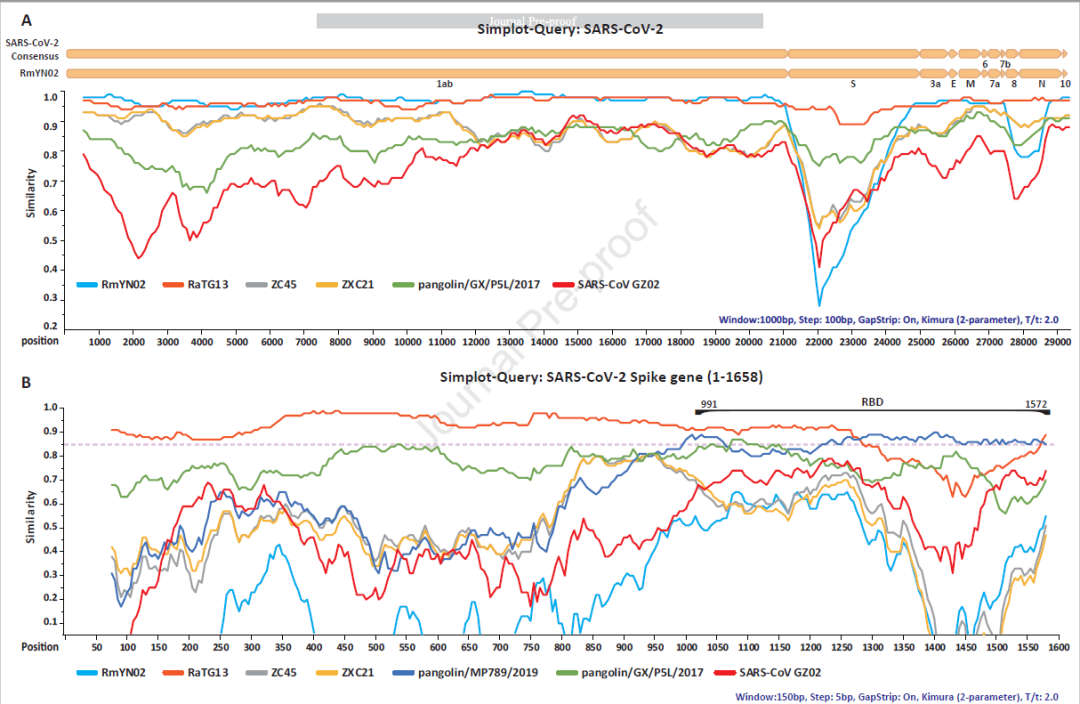 研究团队描述了最近发现的一株蝙蝠冠状病毒,将其命名为RmYN02。该冠状病毒在基因组某些区域与新型冠状病毒亲缘关系最近。