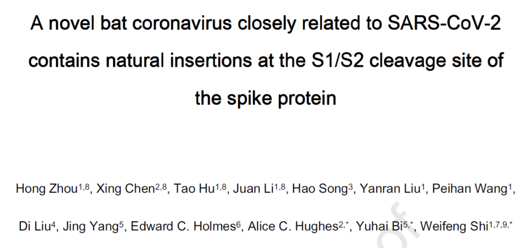 日前,山东第一医科大学史卫峰团队在 Cell 子刊 Current Biology 杂志发表了题为:A novel bat coronavirus closely related to SARS-CoV-2 contains natural insertions at the S1/S2 cleavage site of the spike protein 的研究论文。
