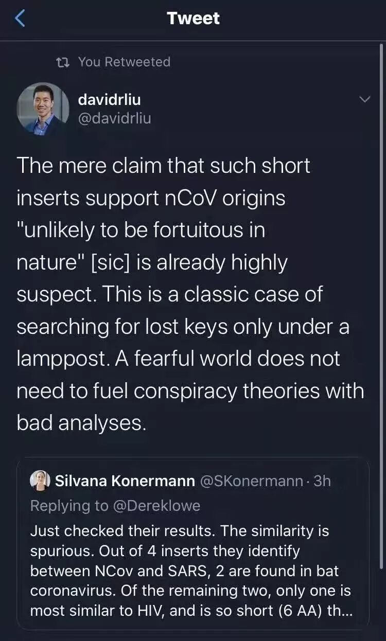 对于这一耸人听闻的研究结果,哈佛大学科学家、CRISPR基因大牛,大家的老熟人 刘如谦(David Liu)教授在推特称这一研究结果不靠谱,纯属阴谋论。