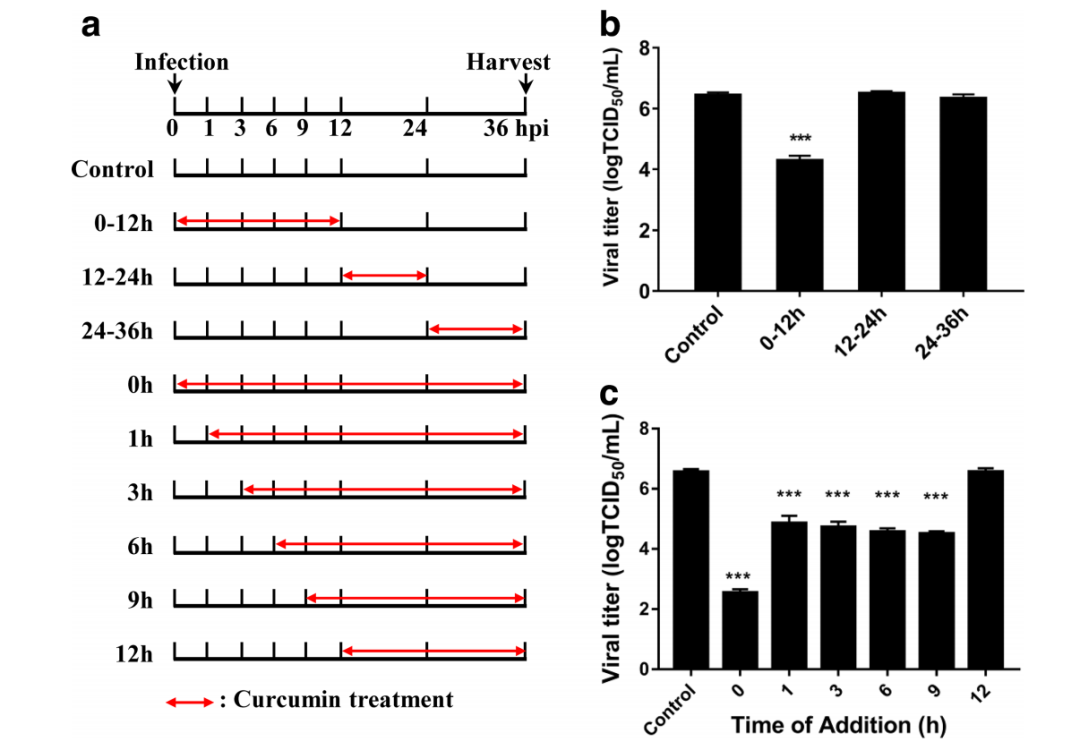 “我们的研究证明姜黄素对TGEV具有抑制作用,这表明姜黄素可能是有效控制TGEV感染的候选药物,”对此,文章的第一作者Lilan Xie博士说道:“目前无疫苗病毒疾病的防控难度很大,而中药及其有效成分具有获取方便、副作用小等优点,是抗病毒药物的理想筛选库。”