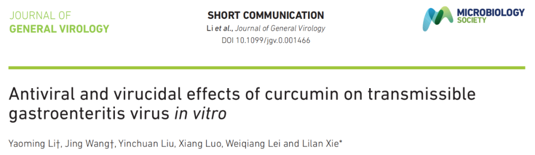 近日,武汉生物工程学院的研究人员在 Journal of General Virology 杂志上发表题为:Antiviral and virucidal effects of curcumin on transmissible gastroenteritis virus in vitro 的研究论文。