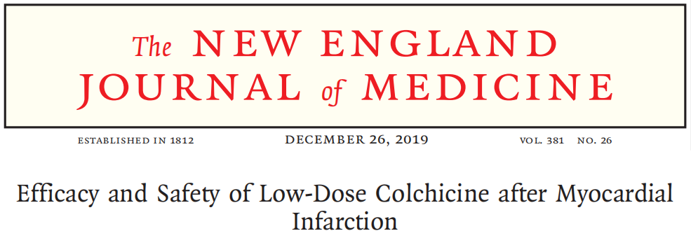 3. Tardif JC, Kouz S, Waters DD, et al. Efficacy and Safety of Low-Dose Colchicine after Myocardial Infarction. N Engl J Med. 2019;381(26):2497-2505.