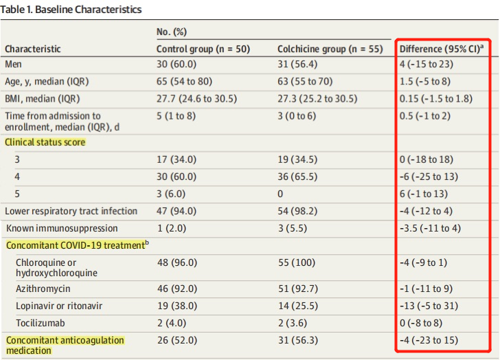 这项临床试验是一项在希腊16家教学医院开展的RCT研究,受试者按照1:1比例接受秋水仙碱或常规治疗。对照组按COVID-19的诊疗常规(protocol)接受药物治疗,干预组的患者再常规治疗的基础上先接受负荷剂量的秋水仙碱1.5mg,如未观察到胃肠道不良反应则60分钟后再给0.5mg。在联合给药阿奇霉素的情况下,单剂量服用1.0mg秋水仙碱。维持剂量均为0.5mg秋水仙碱,每日两次(体重<60kg的患者每日一次),直至出院或住院满21天。