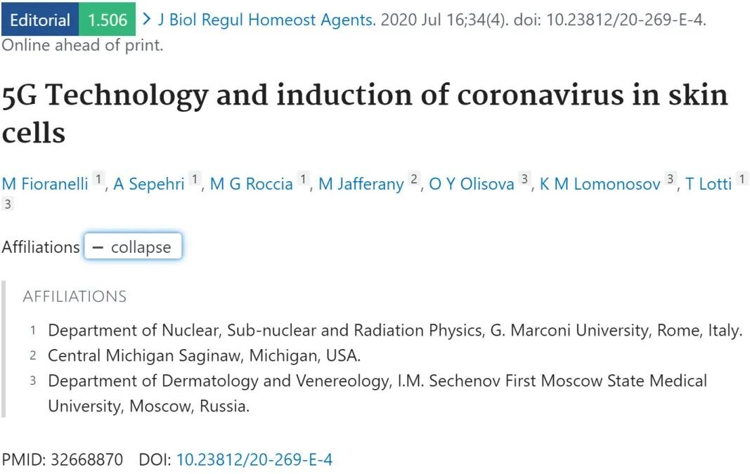 前两天,BioWorld报道了一篇来自意大利、美国、俄罗斯三国研究人员的题为:5G Technology and induction of coronavirus in skin cells(5G技术及其在皮肤细胞中诱导冠状病毒的研究)的奇葩论文。