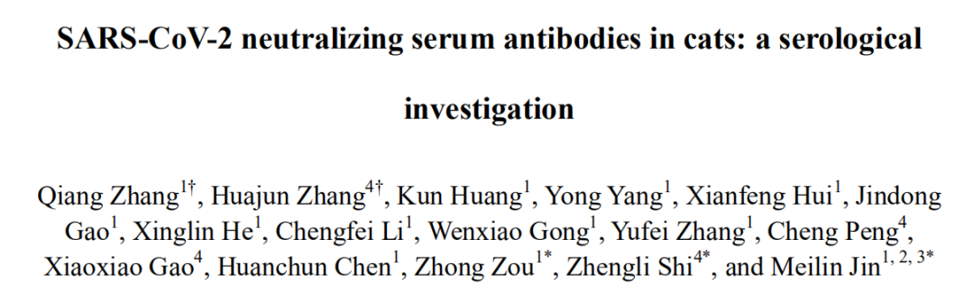与此同时,华中农业大学金梅林教授、中科院武汉病毒所石正丽教授等也在bioRxiv上发表题为——SARS-CoV-2 neutralizing serum antibodies in cats: a serological investigation 的研究论文。