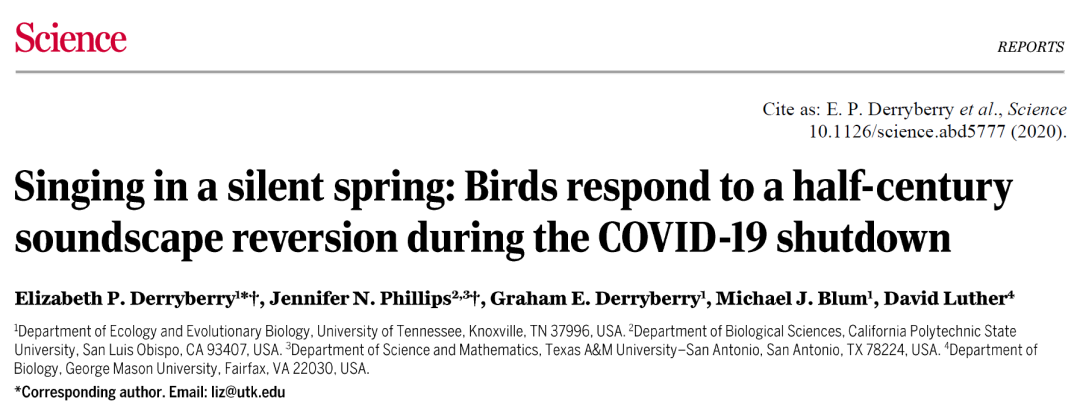 近日,Science 杂志发表了一项题为:Singing in a silent spring: Birds respond to a half-century soundscape reversion during the COVID-19 shutdown 的研究论文。