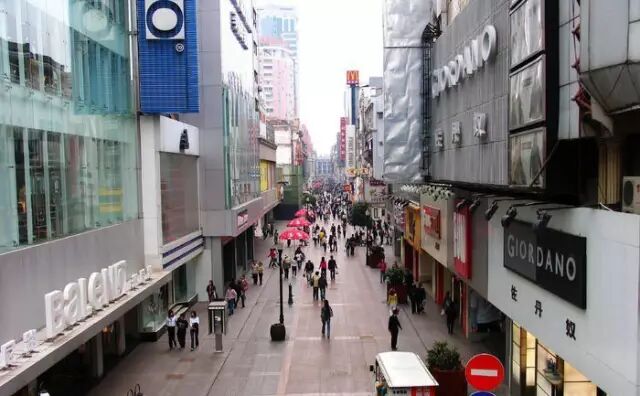 从鄱阳街至中山大道300米距离,形成以国家级老字号及现代国内名牌商品为主体的商业区段,如精益眼镜店、老亨达利钟表店以及班尼路、李宁服饰、大台北鞋城、高邦服装、百世吉、佑威服饰、真维斯、佐丹奴、丽莱服装、鄂尔多斯等专卖店。从中山大道至江汉四路510米距离,形成以中心百货商店、新世界百货中心、俊华名品广场等现代大型商场为中心的综合性的商业区段。