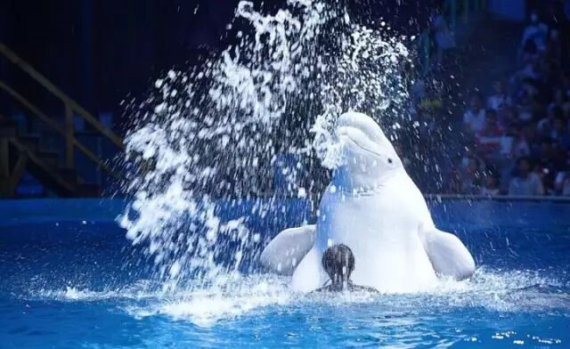 拥有大型鲸豚表演馆,可同时容纳3600多人同时观看表演。