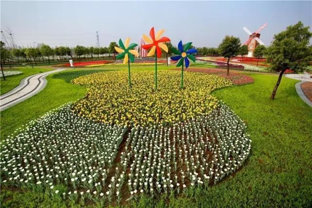 园区着力打造以欧洲风情为主、以西洋乐器为辅的郁金香观赏园。荷兰风情园紧紧围绕郁金香,设计有典型的荷兰元素,诸如大风车、小木屋、帆船等,重点体现荷兰风情;入口设计竖琴水景、园路中设计钢琴、花带辅以乐符,将风情园营造成一个西洋乐器园,仔细聆听,仿佛在演奏<郁金香颂>,又仿佛是在演奏一首浪漫的<春天交响曲>,如梦如幻,带你穿越时空。风情园内种植五彩缤纷郁金香花带,结合以上诸多景观元素,营造具有异国情调、甜蜜、浪漫的景观氛围,花带也似飘带,动感十足,犹如雨过天晴之后的彩虹般绚烂夺目,色彩缤纷,浪漫迷人,让人可以尽情的欣赏、尽情的畅游、尽情的演奏、尽情的呼吸,也或者尽情的拍照,也或者拾级而上,领略荷兰风车的风采,感受一下风车给你的视野。