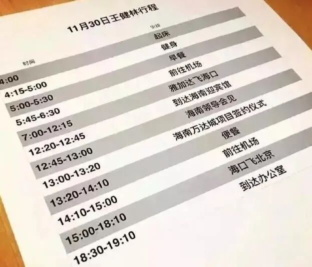 还记得几年前王健林的作息行程表吗?有的看到的是他的努力、有的人看到的是他的时间管理,人家的时间颗粒度就是15分钟,30分钟。