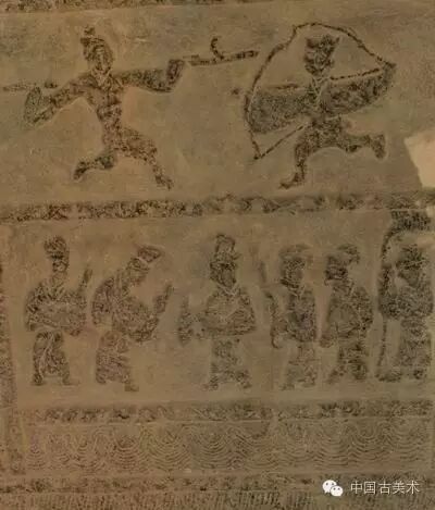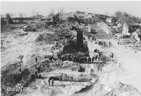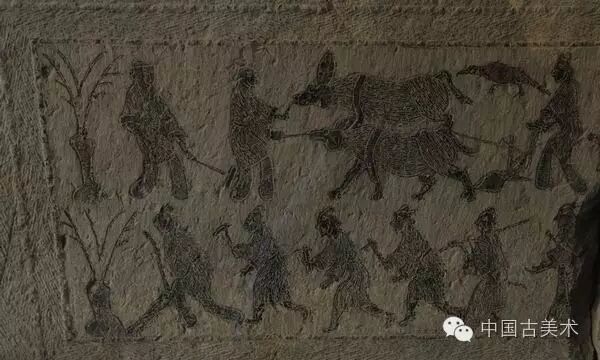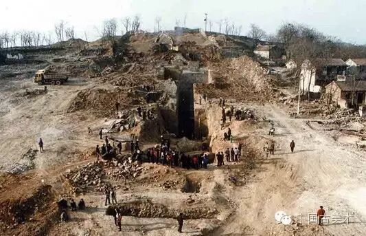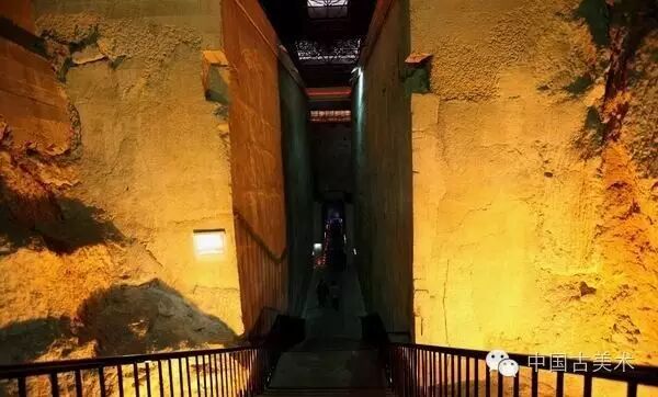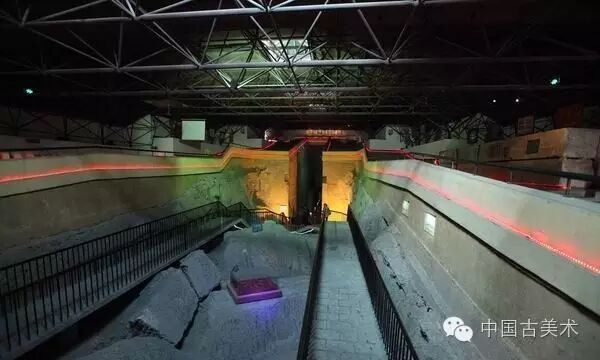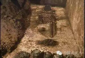 四块塞石一组,一共四组、十六块塞石,呈“田”字形把墓道封堵了整整十米。可惜“道高一尺,魔高一丈”,盗墓者们从天井东侧向西北方向挖盗洞,一直挖到墓门口,定位之准,比今天的考古斟探队有过之而无不及。他们把右上角的这一组塞石打上牛鼻眼,用绳系住,像牵牛一样平拖出来,然后从这里直接爬进了主墓,因此没有发现后面的三间墓室。盗墓的时期很早,是在王莽篡位的时候—公元8年左右。当时的生产力十分低下,而这些塞石每一块都重达五、六吨,这样浩大的工作量,绝不是一两个毛贼、十天八天能干得了的。因此推测,这肯定是一次大规模的官盗。