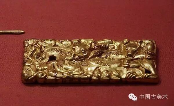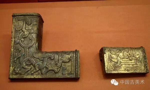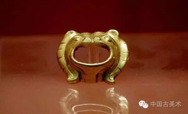 墓室出土了三件非常漂亮的金饰。左边是镶有祖母绿的金带钩,中间是金狮头,右边是金鹈鸪。它们不但金质纯净,雕工也十分精美。但“黄金有价玉无价”,对面这对玉龙更有价值。可是为什么盗墓者没有拿呢?因为当时有“君子无故,玉不去身”之说,而且玉龙象征着王权,把它盗出去,买也没人敢买,留着还容易招来杀身之祸,所以盗墓者没敢拿走。