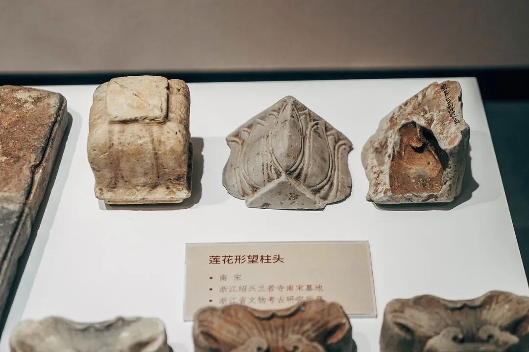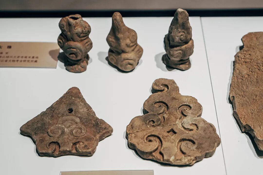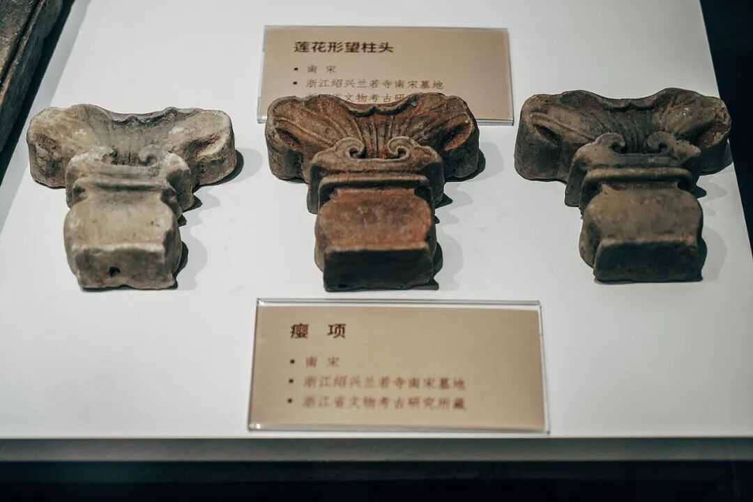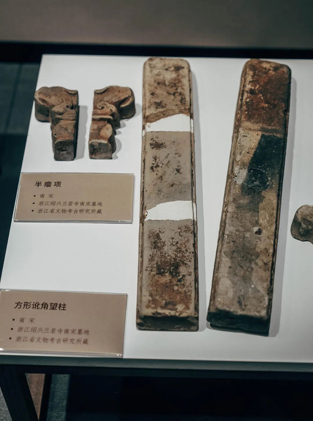 从上面诸多图片不难看出,兰若寺大墓的惊人之处在于出土了数量众多的陶制建筑构件。很显然,它们并非来自木构建筑,很可能来自墓园上层台地的阙楼以及墓园周边的石墙。根据展览现场的介绍,这些构件出土地点集中、年代单纯、扰动较少,可以确信是南宋墓园的遗物。