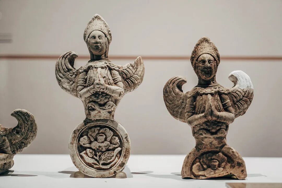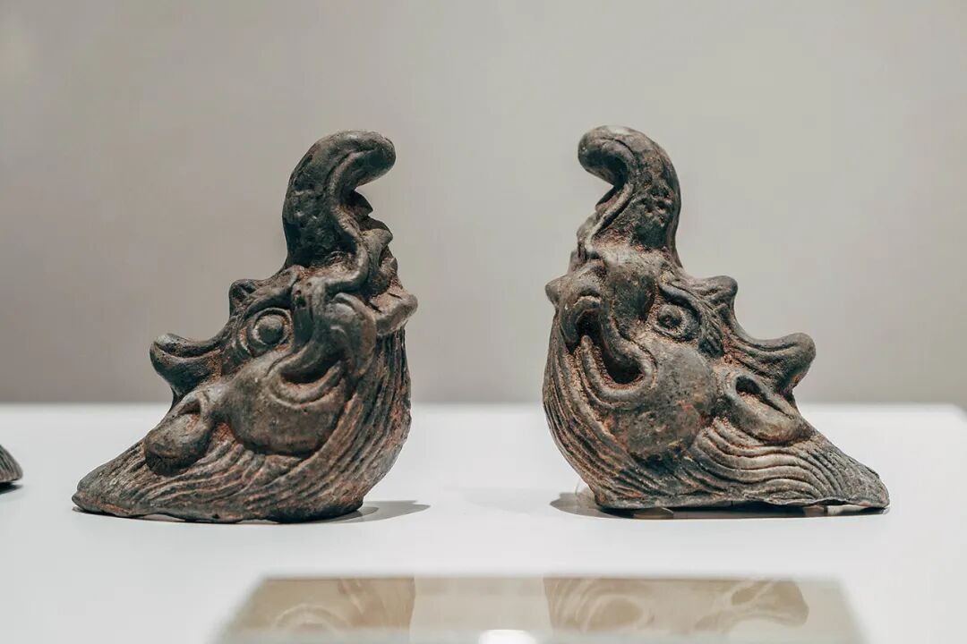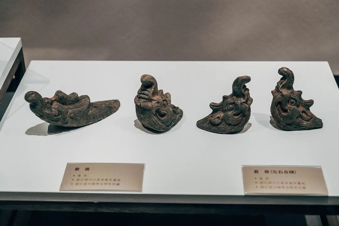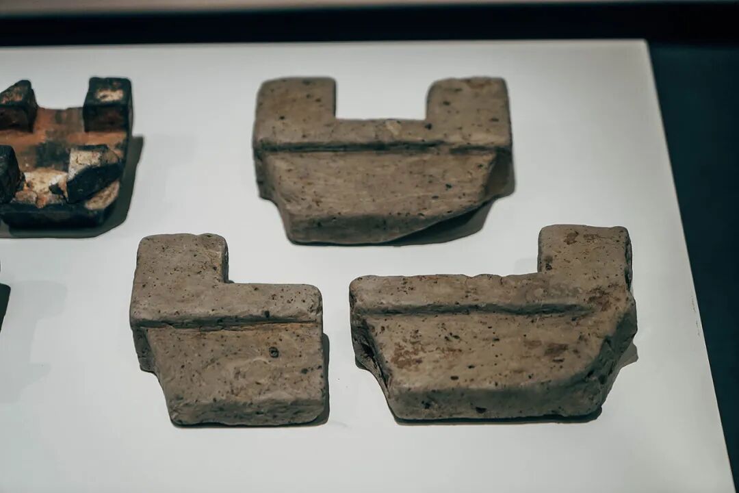 从上面诸多图片不难看出,兰若寺大墓的惊人之处在于出土了数量众多的陶制建筑构件。很显然,它们并非来自木构建筑,很可能来自墓园上层台地的阙楼以及墓园周边的石墙。根据展览现场的介绍,这些构件出土地点集中、年代单纯、扰动较少,可以确信是南宋墓园的遗物。