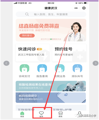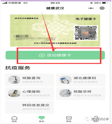 第二步:进入“健康武汉”小程序,点击底部【服务】菜单。