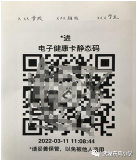 一.按照“申请、下载及打印电子健康卡静态码”的方法及流程,将电子健康卡静态码打印出来,建议打印三份,并标注学生相关信息,如:学校、班级、姓名。