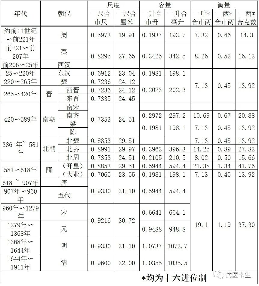 古今度量衡对照