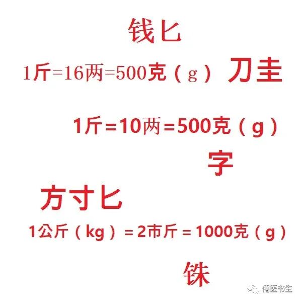 在古方中,除了上述计量单位外,还有方寸匕、钱匕、刀圭等,分别列举如下,以供参考。
