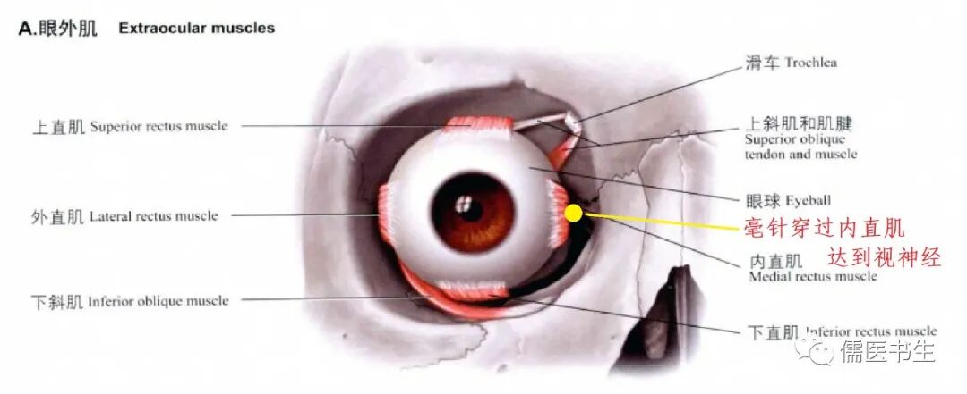 进针时不要做补泻手法,不要用力过猛进针,以免取针时发生出血现状以及内直肌不适。