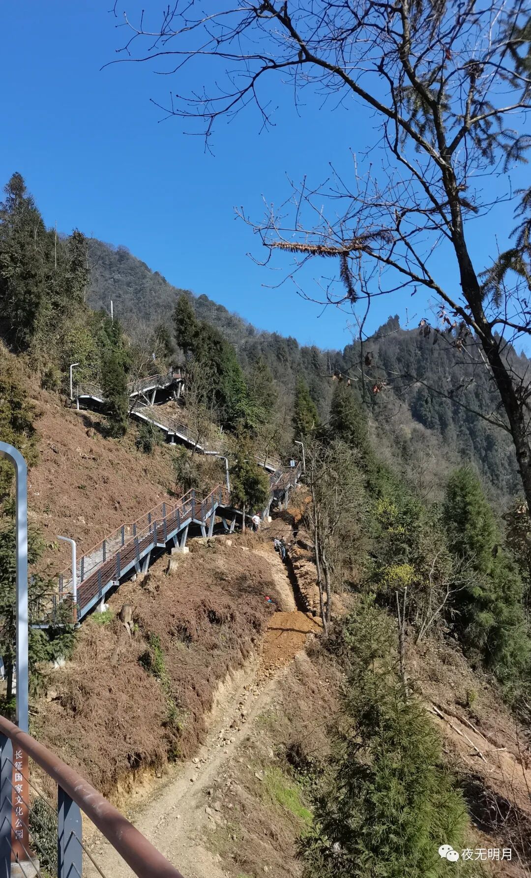 是时,后山栈道未修,独有刀耕斧樵小路,雪化入泥,路滑异常,双足难支,拄杖缓行,半日登顶。彼时后山之路即为今时长征国家文化公园之道。