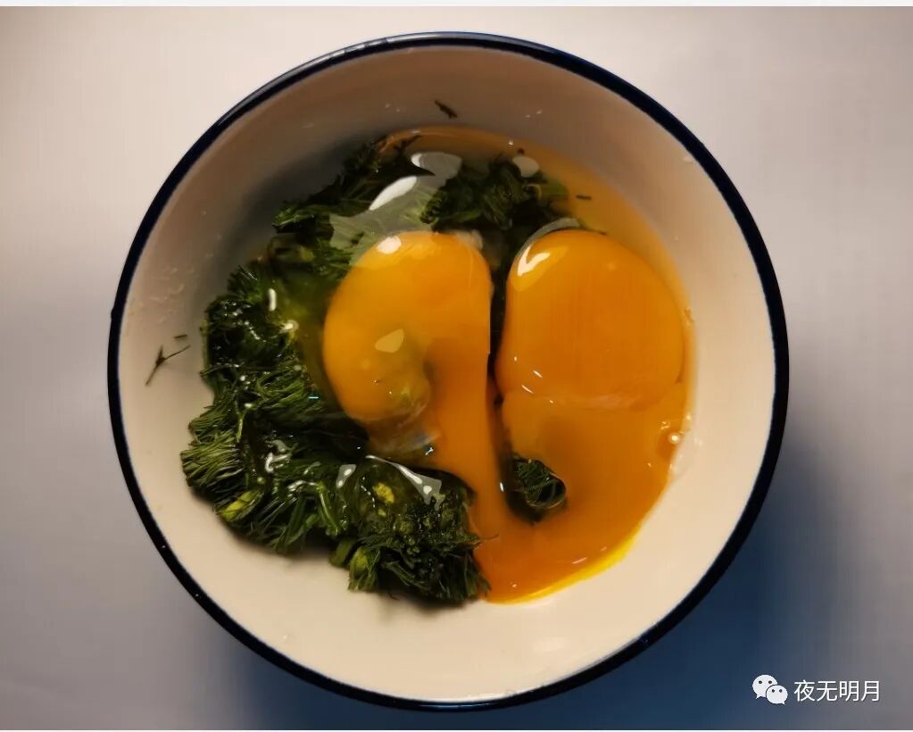 我选了大概七八根茴香,切去根部稍老的部位,我也是稀奇,人家老点就老点,还切去一截,又不是吃不动,什么样的生活水平,居然吃茴香偏要切去一截,不能忍。放在小碗有一小半,鸡蛋选了两个,加上盐拌匀,茴香和鸡蛋的比例也还好。 技术菜,火候,油两掌握不好,只有放了更多的油,美其名曰“过油”,太油腻那就先吃一半,吃完再喝一口绿茶,据说绿茶可以刮油,反正我是信了。 昨天,今天做过一次。昨天出锅的时候,里面还有点流动的蛋液,安慰自己,生鸡蛋也可以吃,一口气吃了一半,剩下的蒸锅再造。