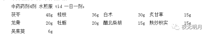 本次所用茯苓桂枝白术甘草汤剂量参考《伤寒论》原剂量,因为患者心悸明显,考虑为心阳不振,故加龙骨、牡蛎以镇摄心阳。加柴胡、枳实的原因是:按照中医五脏运行规律,左升右降,柴胡升左侧之气机,枳实降右侧之气机,左右一升一降,水液运行自然如常,故而可消停滞之胸水。总体用药不多,一共九味,如果再多加一些药,我实在找不到加减的理由,所谓贪多勿得,杂而不精的弊端也出现了。