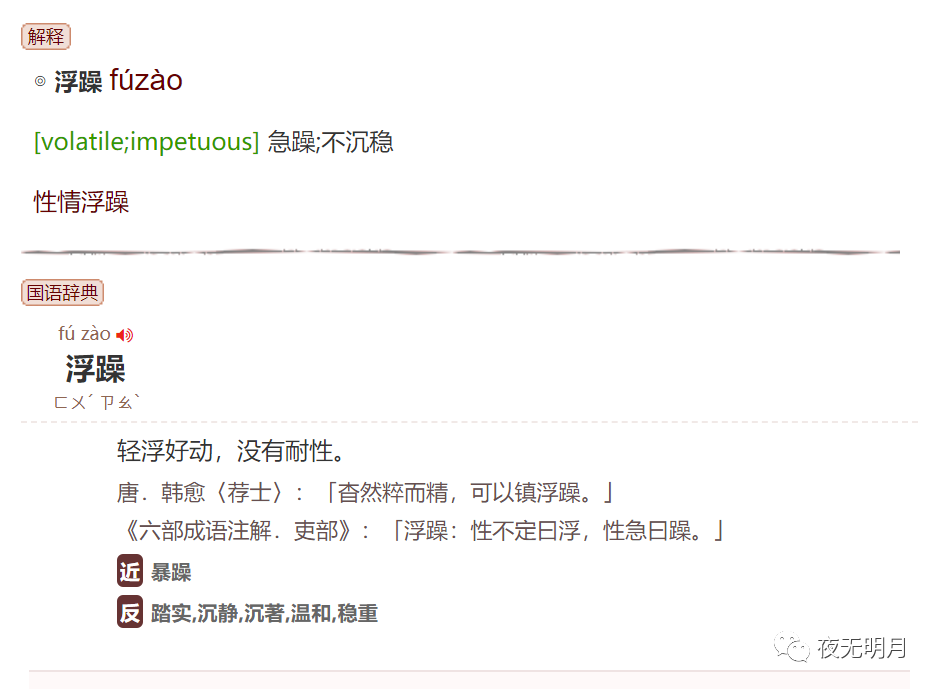 浮躁是什么意思,在查阅汉典词典后找到如下解释:
