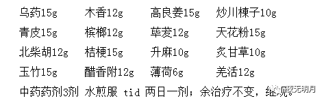 患者服药三天后,诉胃部疼痛症状明显减轻,第五天病情好转出院,出院嘱患者继服2帖药。