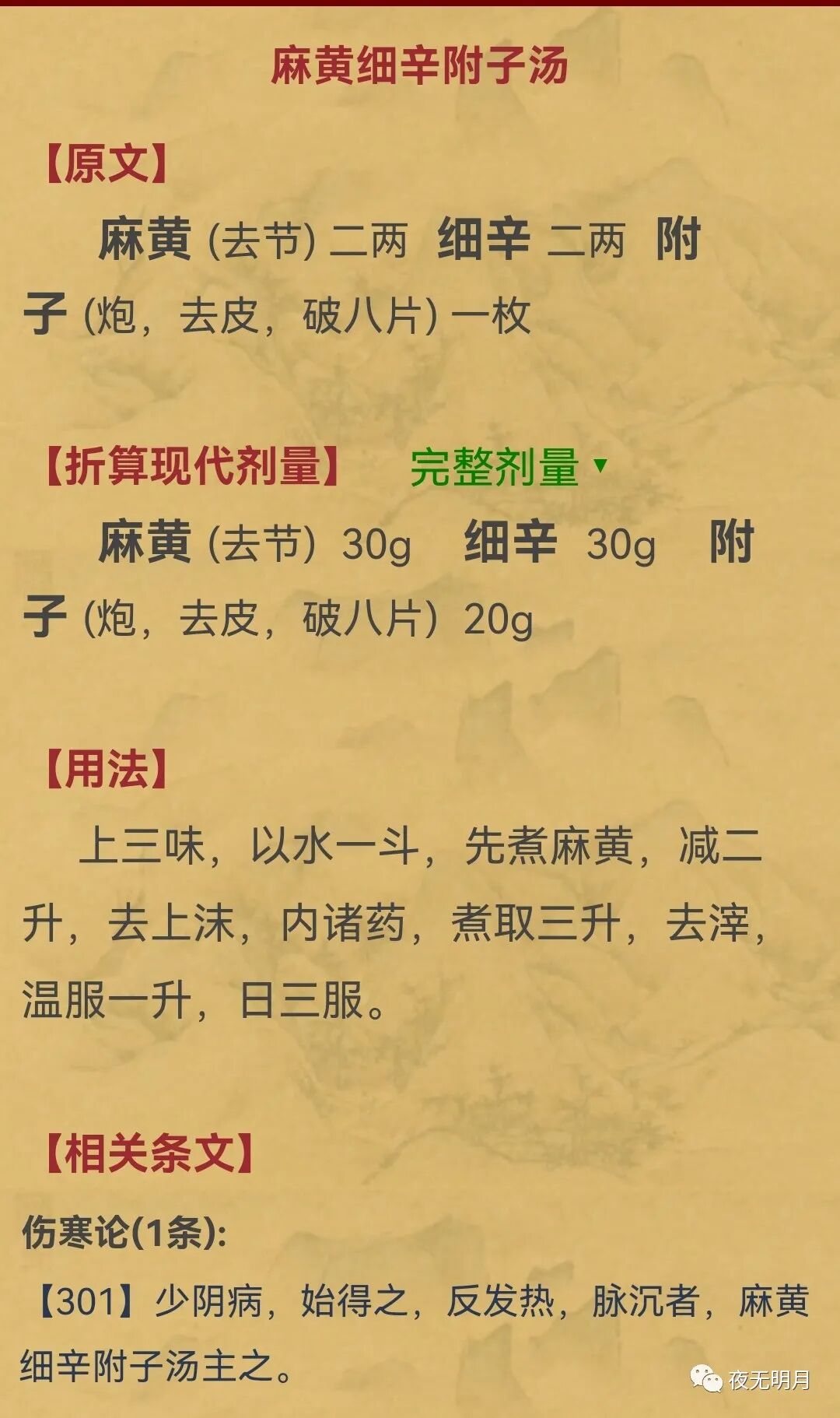 麻 黄10 细 辛6 淡附片颗粒48