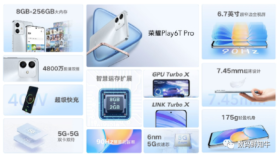 4月7日晚上,荣耀发布了荣耀Play6T和Play6T Pro两款新机型,定位5G入门级市场,很大方的周边配置成了最大的吸引力,8GB+256GB的最高存储组合,优秀的外观设计,彰显了荣耀自身的特色。关键是价格很亲民,最高售价不超过1600元,最低只有1199元。具体配置和售价请看后文配图。