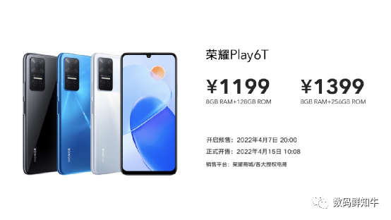 这两款手机的价格还是很亲民的,其中荣耀Play6T起售价为1199元,顶配的售价为1399元。