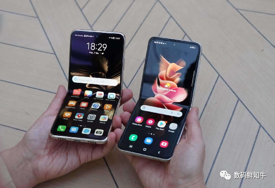 代表产品如三星Galaxy ZFlip系列,折叠后大小像个粉饼盒,打开后就是常规手机大小。