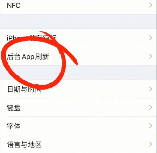 点进去之后我们可以看到有一个选项,是“后台应用刷新”,点进去,在这里我们就可以看到所有的应用刷新。