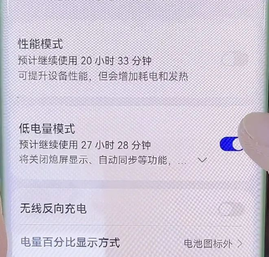 首先我们以安卓系统的华为手机来举个例子,先打开“手机设置”,在列表中的选项里面找到“电池”,点进去。点进去之后我们可以看到,里面显示有一个“低电量模式”,我们将后面这个开关按钮给它打开。如此一来,它就可以自动给我们节省手机的电量了。