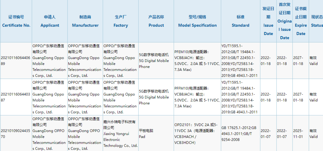 OPPO 有两款 5G 手机通过 3C 认证入网,据透露这两款机型就是春节后发布的 OPPO Find X5 以及 X5 Pro。