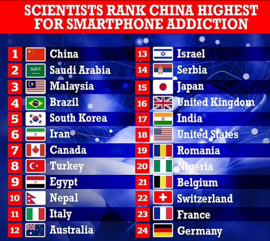 近日,加拿大麦吉尔大学研究人员对全球 24 个国家近 3.4 万人在 2014 至 2020 年期间的智能手机使用情况进行了研究。研究显示,中国、沙特阿拉伯和马来西亚是智能手机成瘾问题最严重的 3 个国家,德国、法国排名垫底。