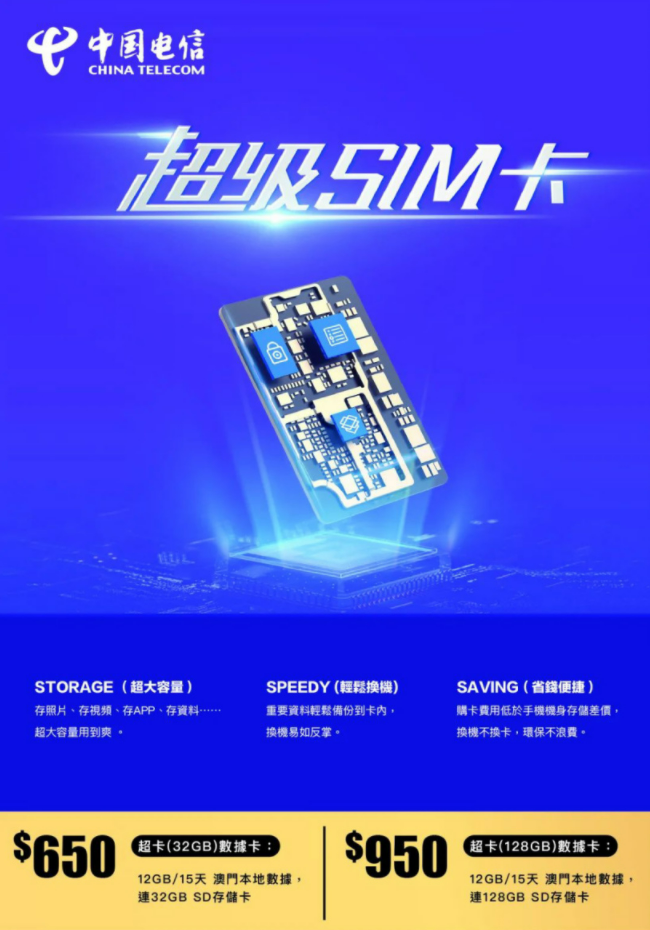 近日,中国电信(澳门)推出了旗下的超级 SIM 卡产品。