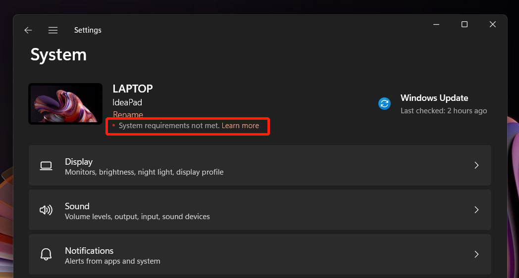 如果你在不符合要求的机器上安装了 Win11 系统,你将在接下来一段时间内看到 Windows 设置带来的一个新警告(提醒)。